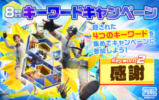 グローバルリリース8周年記念キーワードキャンペーン開催! PUBG MOBILE日本公式SNS、サイト、ゲーム内に隠されたキーワードを集め、キャンペーンに応募しよう! [もっと見る]