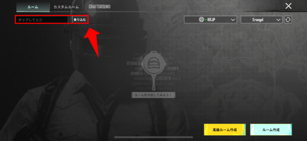 - 画面左上の「タップして入力」からルームIDを入力し参加。パスワードがかけられているルームが次にパスワード入力画面に遷移されます。
