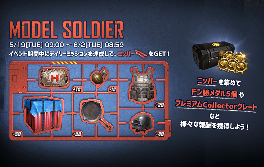 「ニッパー」を使用してランダムにポイントを獲得でき、「ドン勝メダル」5個や「プレミアムCollectorクレート」などの報酬と交換できます。