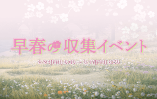 早春の収集イベント 春の兆しを感じ始める季節に早春の収集イベントを開催! イベントアイテム「新芽」を集めて、「Sweet Rabbitセット」や「もちもちウサギフレーム」を手に入れよう! [もっと見る] operate-editor22023-02-21T14:26:46+09:0023.02.24|お知らせ|