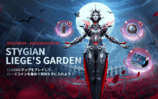 STYGIAN LIEGE’S GARDENイベント イベント期間中にCLASSICマップで「ローズコイン」を集めて報酬を手に入れよう! 性別で外見が異なる新規レベルアップ衣装「Blood Holy Kingセット」は4月7日(金)から登場予定! [もっと見る] operate-editor22023-04-05T12:23:29+09:0023.04.04|お知らせ|