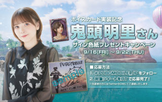 ボイスカード「鬼頭明里A」が『PUBG MOBILE』に新登場!これを記念して直筆サイン色紙が当たるキャンペーンを実施します。 キャンペーン期間中に公式Twitter(@PUBGMOBILE_JP)をフォロー&対象のツイートをRTしてくださった方の中から抽選で4名様に鬼頭明里さんの直筆サイン色紙をプレゼント! [もっと見る]