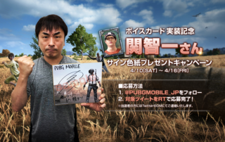 ボイスカード「関智一A」の実装を記念して「直筆サイン色紙」が当たるキャンペーンを実施します。 キャンペーン期間中に公式Twitter(@PUBGMOBILE_JP)をフォロー&対象のツイートをRTしてくださった方の中から抽選で2名様に関智一さんの直筆サイン色紙をプレゼント!   ※ボイスカード「関智一A」のサンプルボイスを『PUBG [もっと見る]