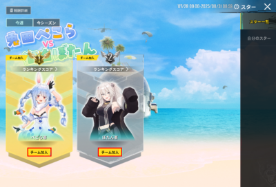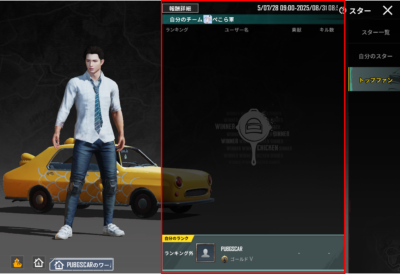 - 右側タブの「自分のスター」をタップし、自身の成績を確認